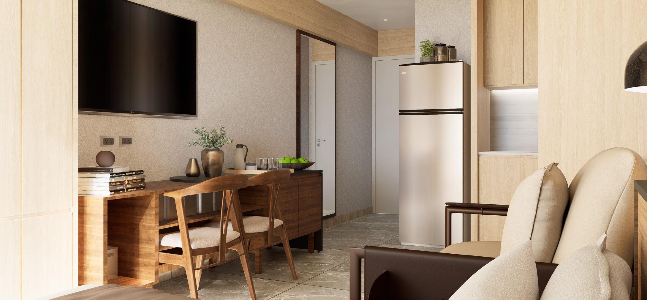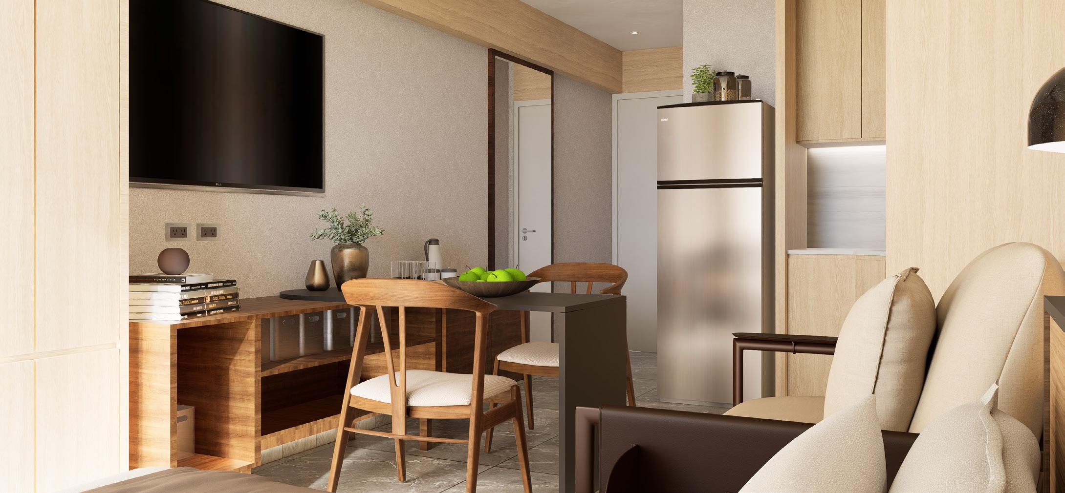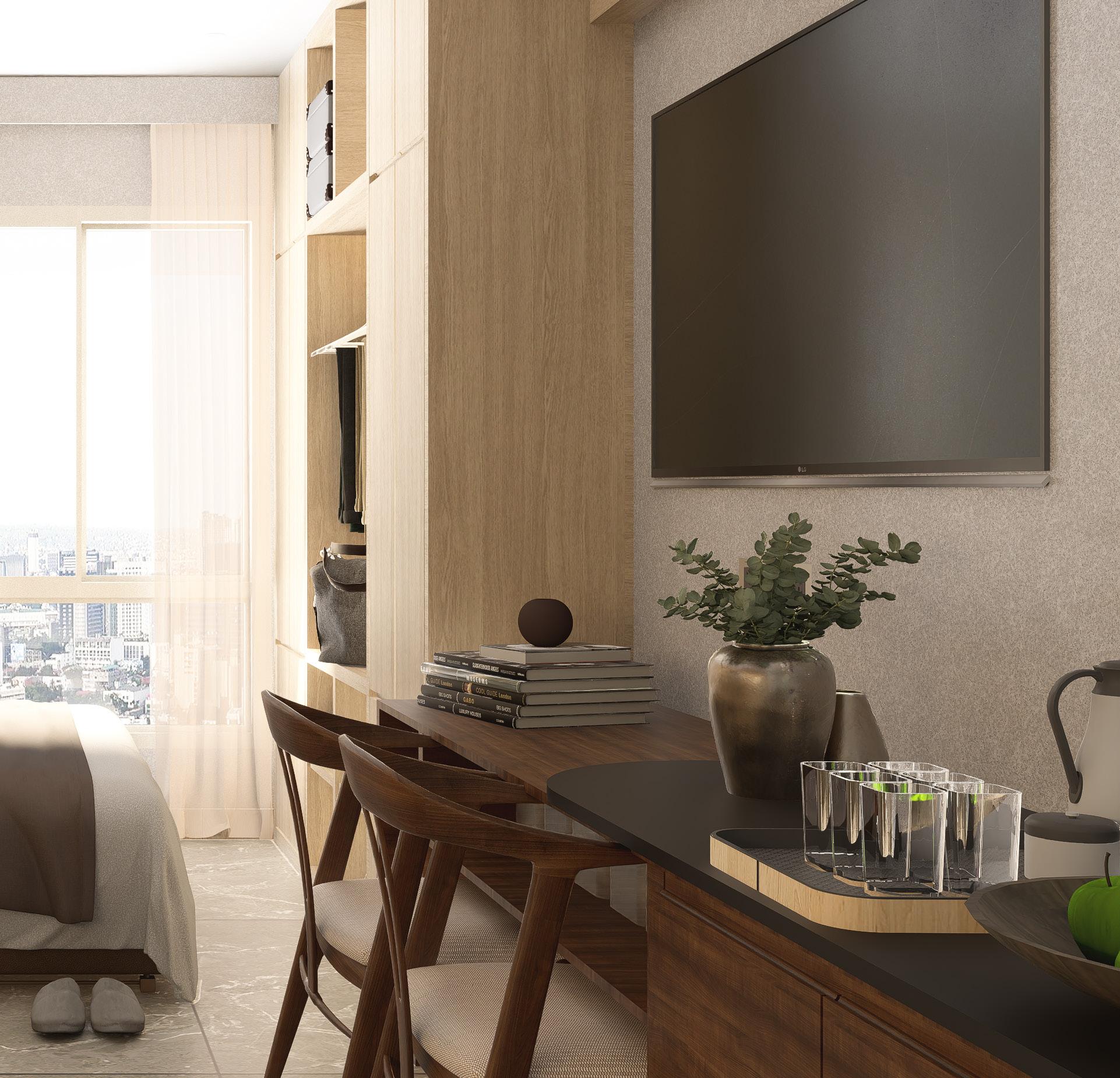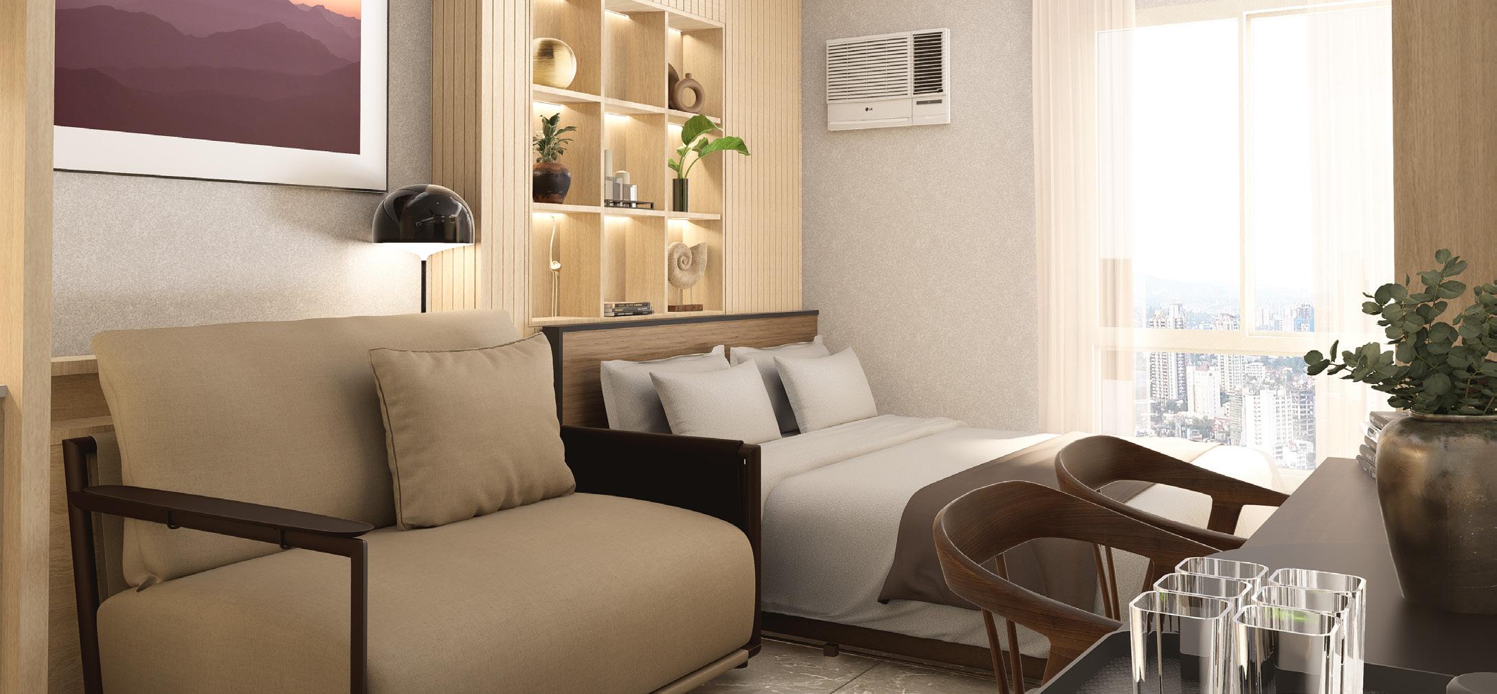 Located in Cebu City’s bustling IT Park, this studio unit was designed for rental, with a focus on creating a light, airy atmosphere that promotes calm and comfort. The design uses soft materials and finishes to make the compact space feel open and inviting.