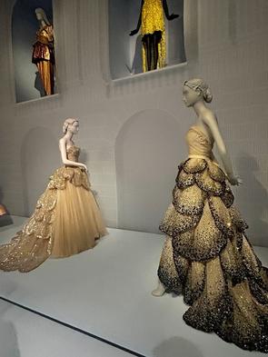 Las flores doradas y metálicas reflejan el jardín encantado típico de Dior, donde la naturaleza se vuelve lujo.