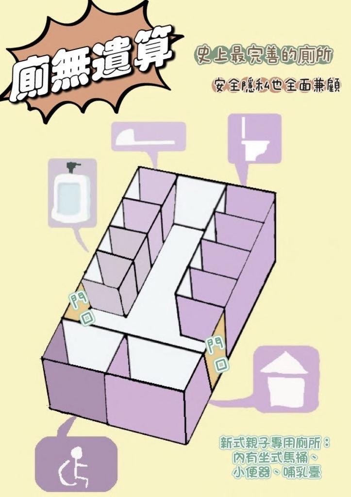 各一間,我們的設計名稱「廁無遺算」源自於成語「策無遺算」,代表