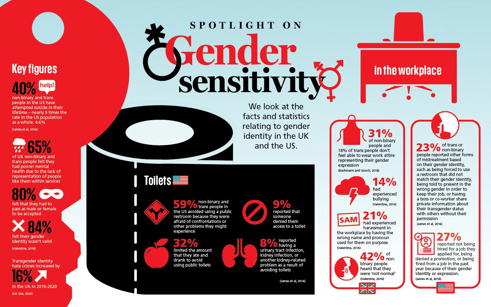 內容說明 1. 憋尿:生理男女因為使用廁所時間時長不同,男女使用廁所時間約為 1:2,且女性使用廁所頻率較高,如果沒有妥善安排性別友善廁 所,會導致供不應求,出現憋尿的狀況。女性因為身體構造的關係, 也比較不耐憋尿,更進而造成身體傷害。 2. 家長孩子性別不同:除了性別友善廁所,親子廁所也是一種友善廁 所。如果出現母攜男童或父攜女童的狀況,會讓孩子家長和其他如廁 者產生尷尬。尤其男童進女廁所使用情況下,因為女廁內沒有設置小 便斗,會讓男童有些錯亂的感覺,也成為性別不友善之廁所。 3. 身障者和被害者性別不同:身障者和協助者為異性,為了方便看顧, 往往身障者必須進入和自己不同性別的廁所,性別不同易產生不友善 的空間。除了更容易造成意外發生(因為一般廁所不一定有例如扶桿 的防護措施),也可能造成協助者的不自在。 4. 中性氣質或跨性別者:中性氣質的女性在使用廁所常常被側目,造成 彼此心理不舒服。此外,跨性別者比較難用性別二分來主觀判斷其生 理性別,難免也導致尷尬和不自在。在這個強調多元自由、多元的現 代社會裡性別成為了較敏感的字眼,我們較難使用二分性別把人分 類,但在對廁所時,還是要讓每一個人都感到舒服自在的使用,不應 讓廁所成為麻煩。