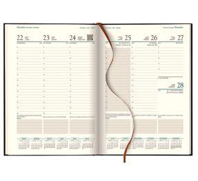 El sistema de encuadernación usado de costura cruzada y doble encolado, asegura la alineación de las hojas duarnte el proceso de fabricación y al usuario le permite tener en la agenda un aspecto estético, alineado y principalmente durable durante toda la vida útil de la agenda.