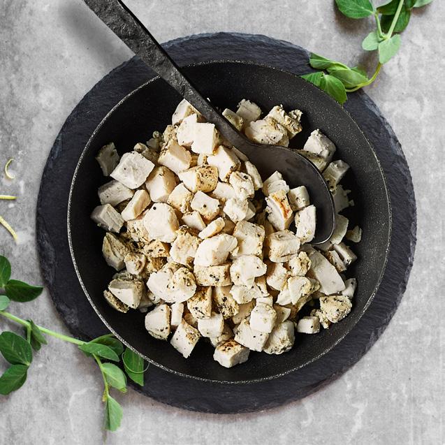 Roasted chicken fillet dices, tender and flavorful, perfect for salads, wraps, or as a protein-packed addition to rice and pasta dishes Versatile and easy to incorporate into any meal for a satisfying bite .