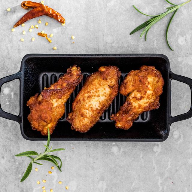 Spicy hot wings seasoned with chili, cumen and ginger, offering a rich aroma of spices and a fiery chili aftertaste Perfect for those who love spicy, intense flavors .
