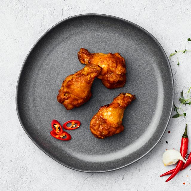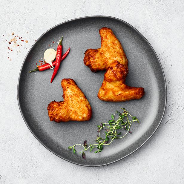 Spicy hot wings seasoned with chili, cumen and ginger, offering a rich aroma of spices and a fiery chili aftertaste Perfect for those who love spicy, intense flavors .