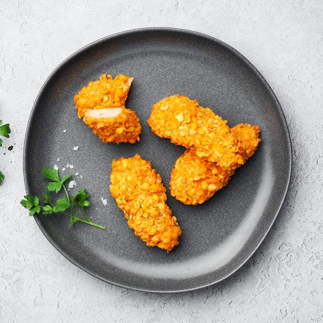 Crunchy chicken goujon coated in our crunchy cornflake crumb, seasoned with spices for a delicious taste