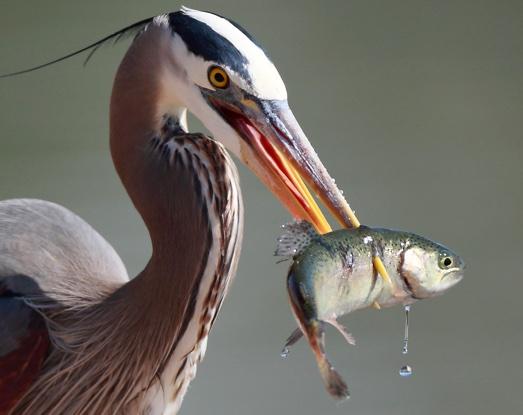 Once the fish is consumed, the heron has a drink or two of water to help the body slide down into its gullet for digestion.