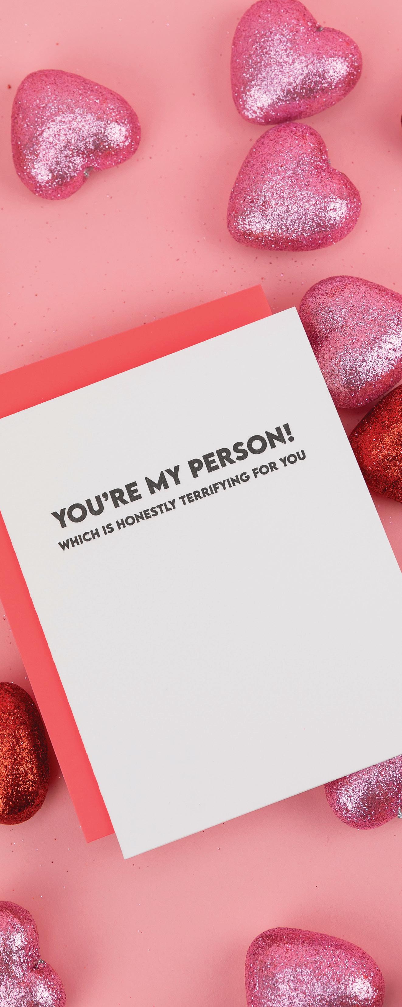 Our cards are printed on tree free paper. All paper and envelopes are FSC certified. Card cellos are 100% biodegradable. All greeting card designs are printed on vintage printing presses. Due to the handmade nature of letterpress printing, slight variations in ink coverage and registration are possible and are part of the beauty of this printing process.