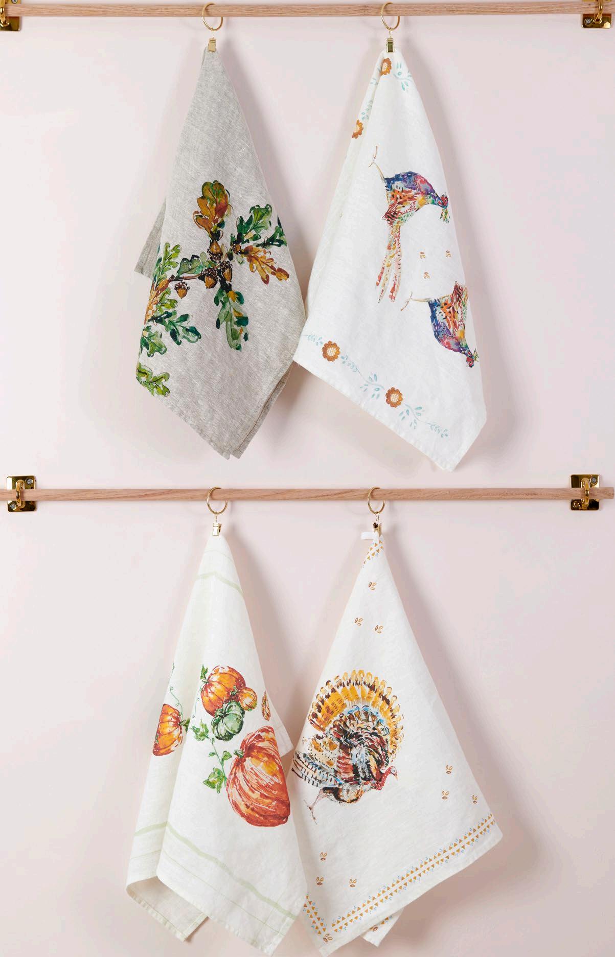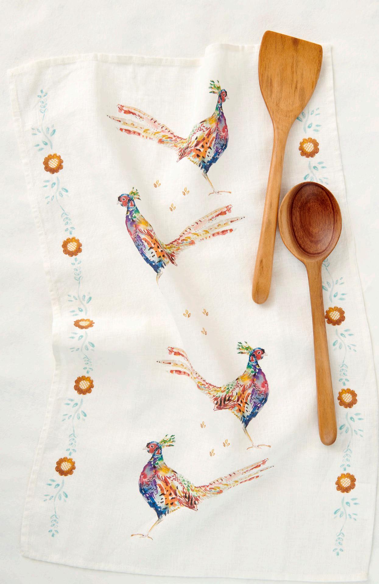 Inspired by artistic design of acorns, pheasants, pumpkins and turkeys, these towels would be a perfect addition to any kitchen. $14 & min 4 per sku