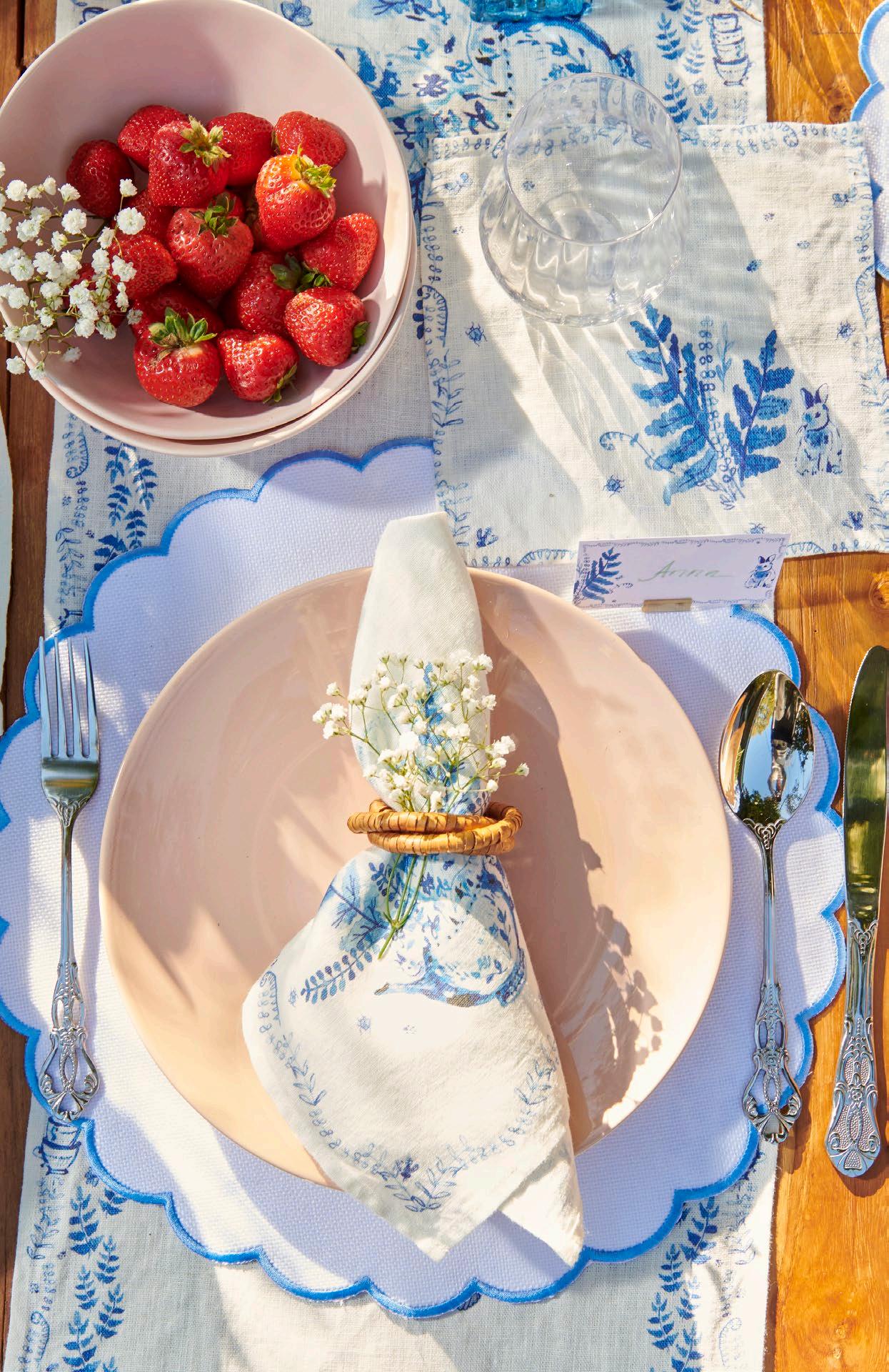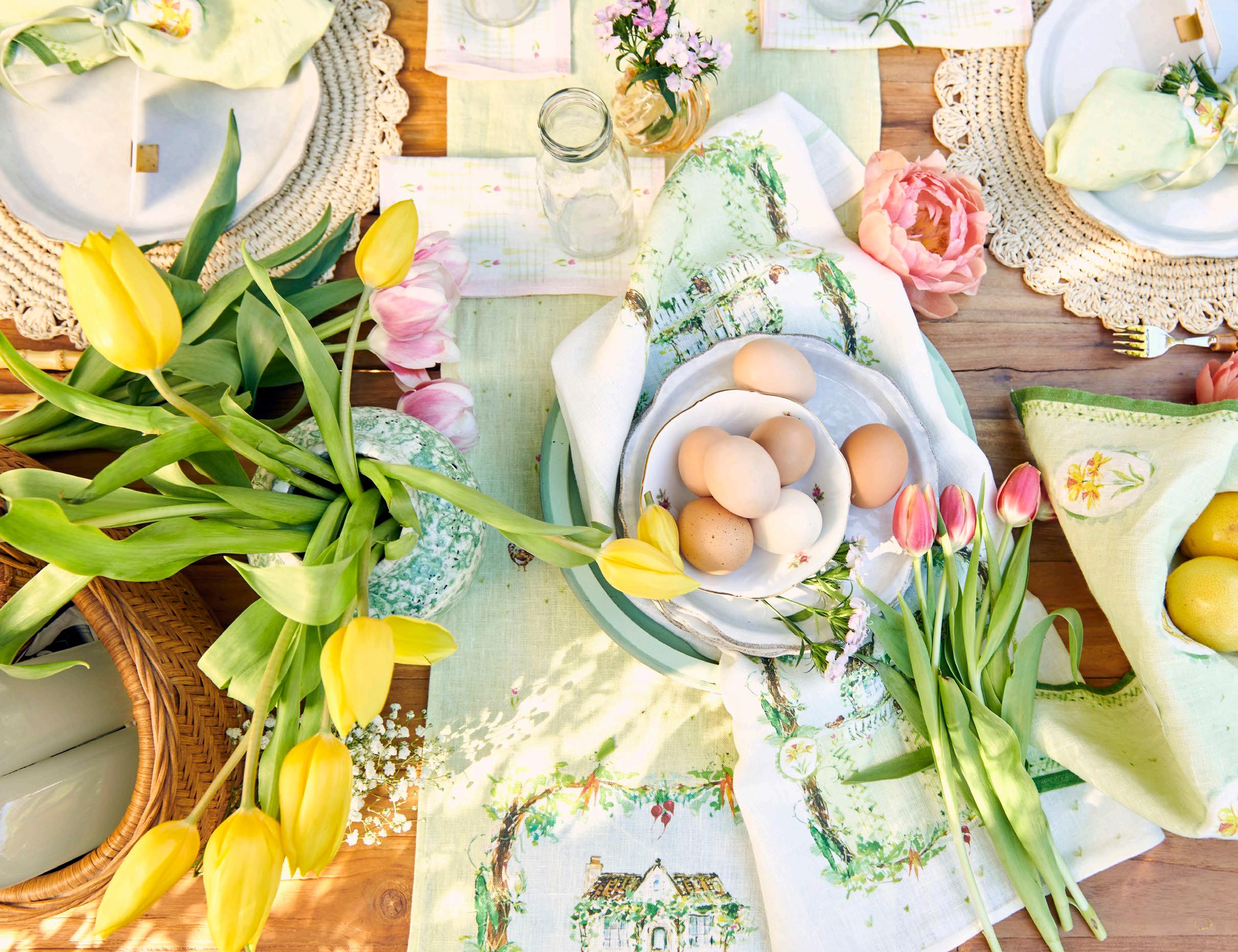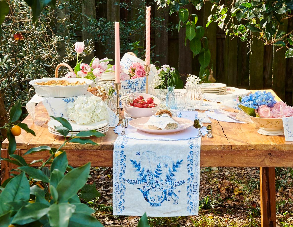 Inspired by nature and spring, these table runners would be a perfect addition to any celebration. 13 x 66 - $28 min 4 per sku Designed in Savannah, GA | Made in Europe