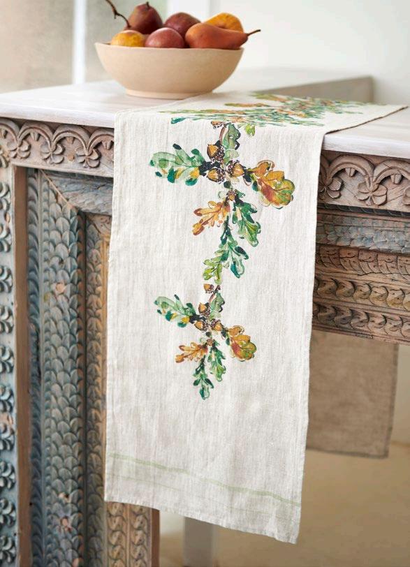 Inspired by fall, these table runners would be a perfect addition to any celebration. 13 x 66 - $28 min 4 per sku Designed in Savannah, GA | Made in Europe