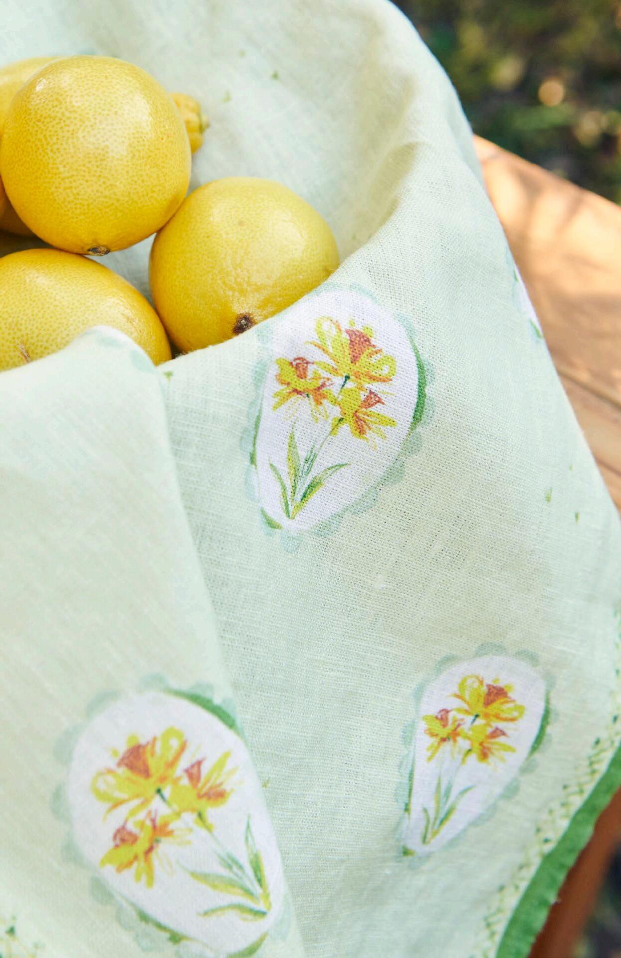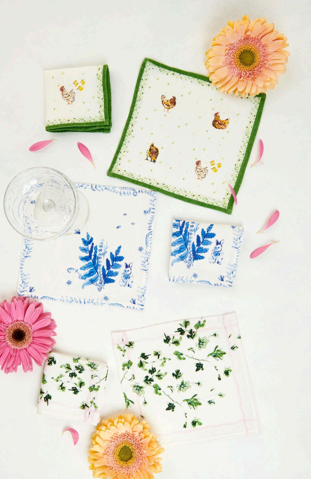 Inspired by nature and spring, these dinner napkins are perfect for any celebration. Packaged with a branded ribbon. $34 & min 4 per sku Designed in Savannah, GA | Made in Europe