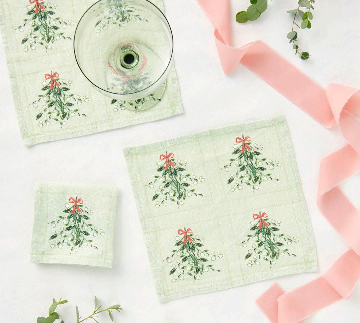 Inspired by holiday decor, these cocktail napkins are perfect for any celebration. Packaged with a branded ribbon. $16 & min 4 per sku Designed in Savannah, GA | Made in Europe