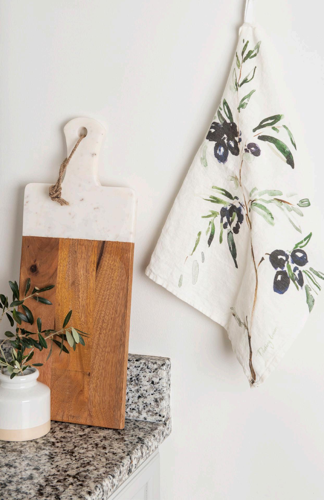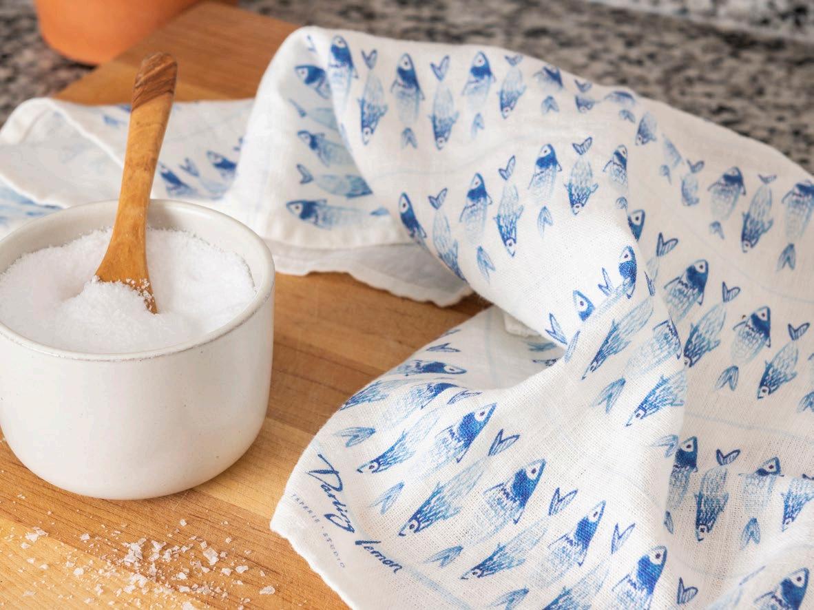 Inspired by artistic design of herbs, olive trees, and fish, these towels would be a perfect addition to any kitchen. $14 & min 4 per sku