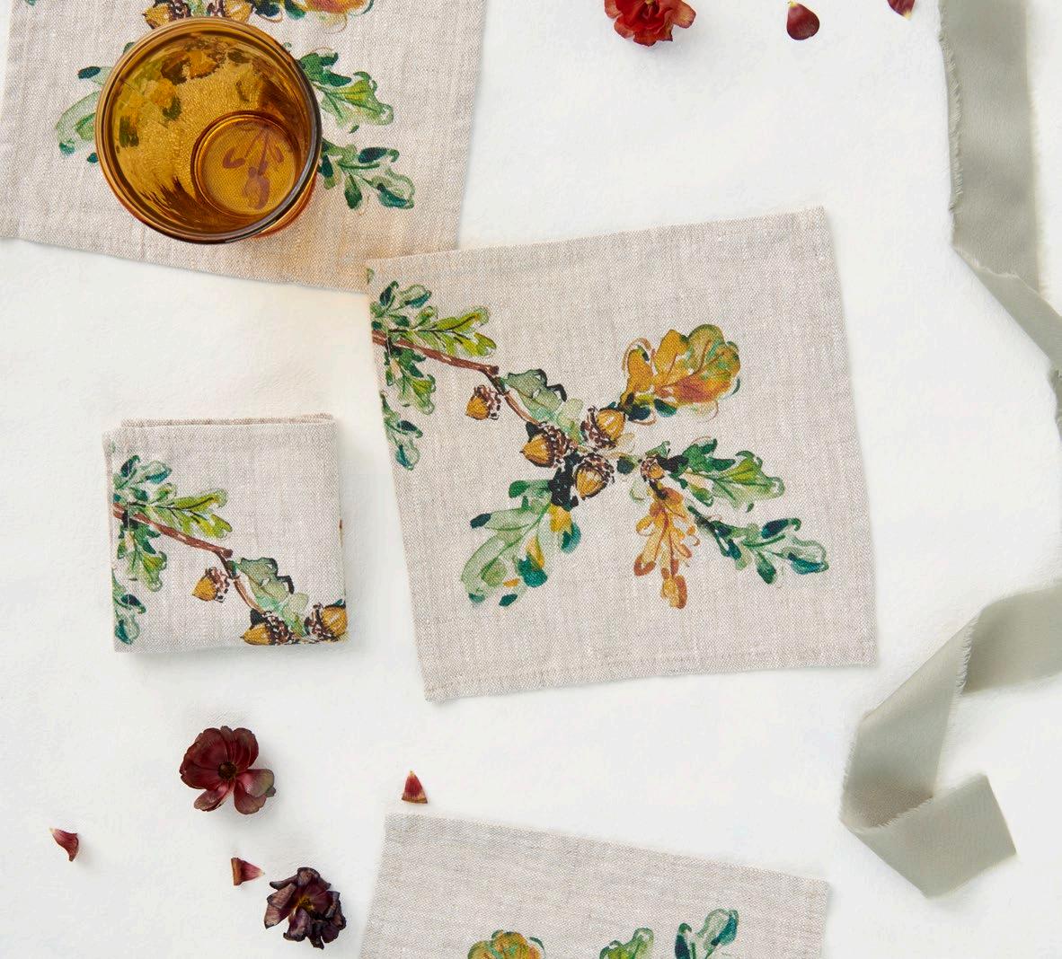 Inspired by nature and holiday, these dinner napkins are perfect for any celebration. Packaged with a branded ribbon. $34 & min 4 per sku Designed in Savannah, GA | Made in Europe