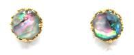 plated metal (gold color), epoxy stone with pearl. Titanium signature ear clutch post