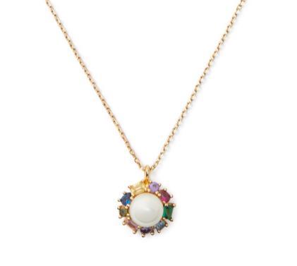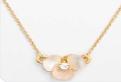 Plated metal, gold polished, mother of pearl, glass stone with signature spade lobster claw closure