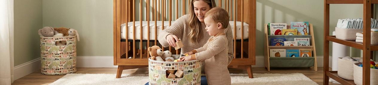 Lucy Darling, in collaboration with GooseWaddle, designed these soft and durable storage bins to complement your baby’s nursery decor. The solid nests neatly inside the patterned bin, maximizing space and providing a convenient, stylish solution for storing toys, clothes, and baby essentials. They also make cleanup fun and easy, encouraging your little one to help with organizing their toys and belongings while fostering a sense of responsibility.