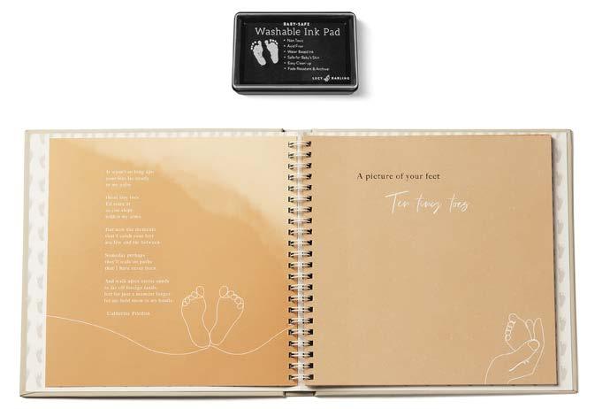 In Lucy Darling’s Foot Books, every stamped footprint of your little one leaves an imprint on the page and on your heart. Watch those tiny toes grow just as your family continues its journey through the first year. Pages filled with little footprints tell the story of your baby’s development, helping you remember all the emotions each new month. Beautiful illustrations enhance each collected moment, creating a unique story to enjoy together for years to come. Perfect for you or as a gift to easily create and enjoy forever memories and those tiny footprints.
