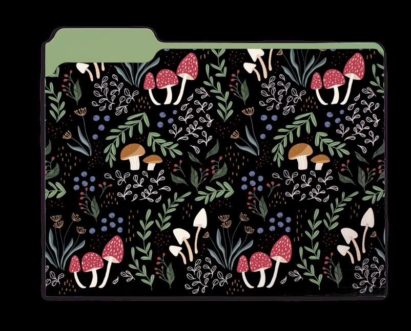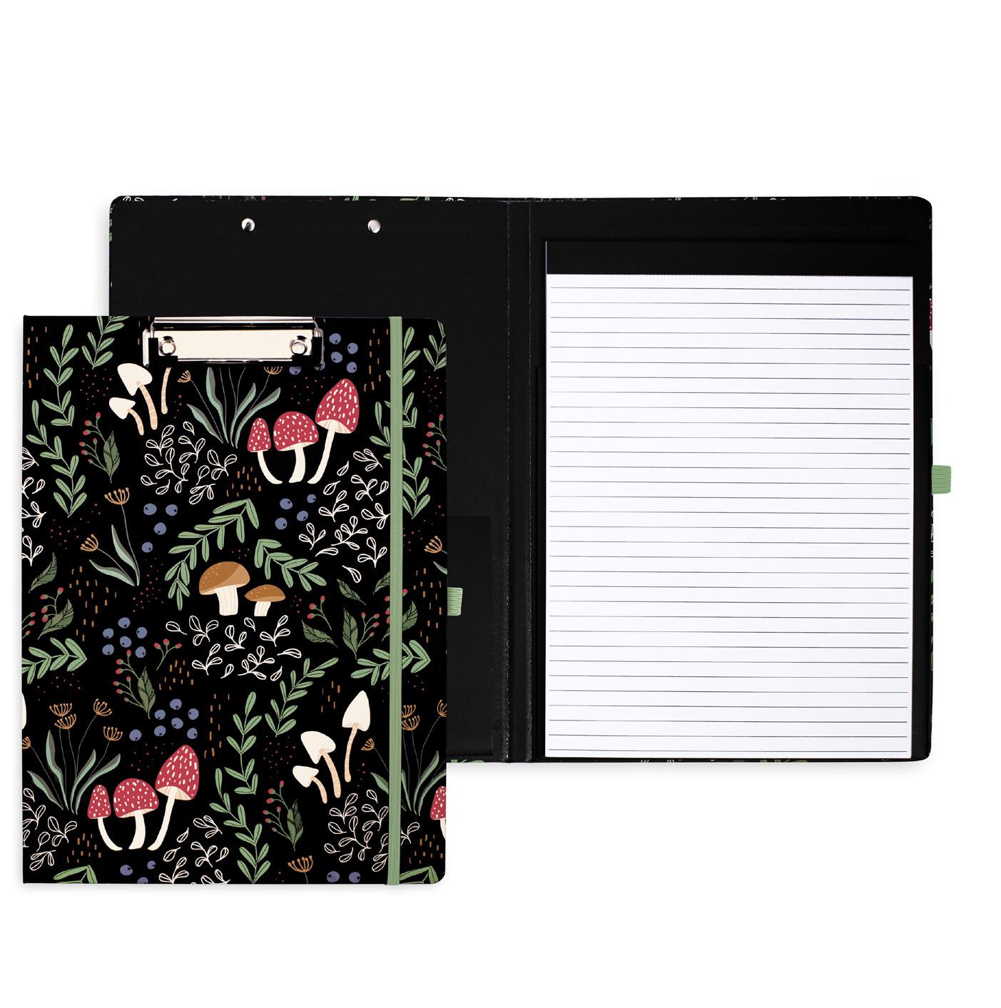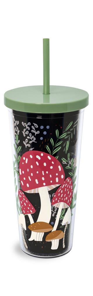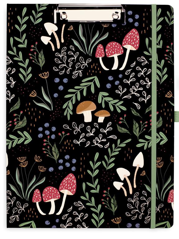 mushroom tumbler with straw double walled acrylic 24 oz. 1350 mushroom file folder set set of 9 9 1/4”h x 11 3/4”w 1348 mushroom clip folio includes 40 page lined notepad interior pocket pen loop 12 3/4”h x 9 1/4”w 1349garden floral notebook