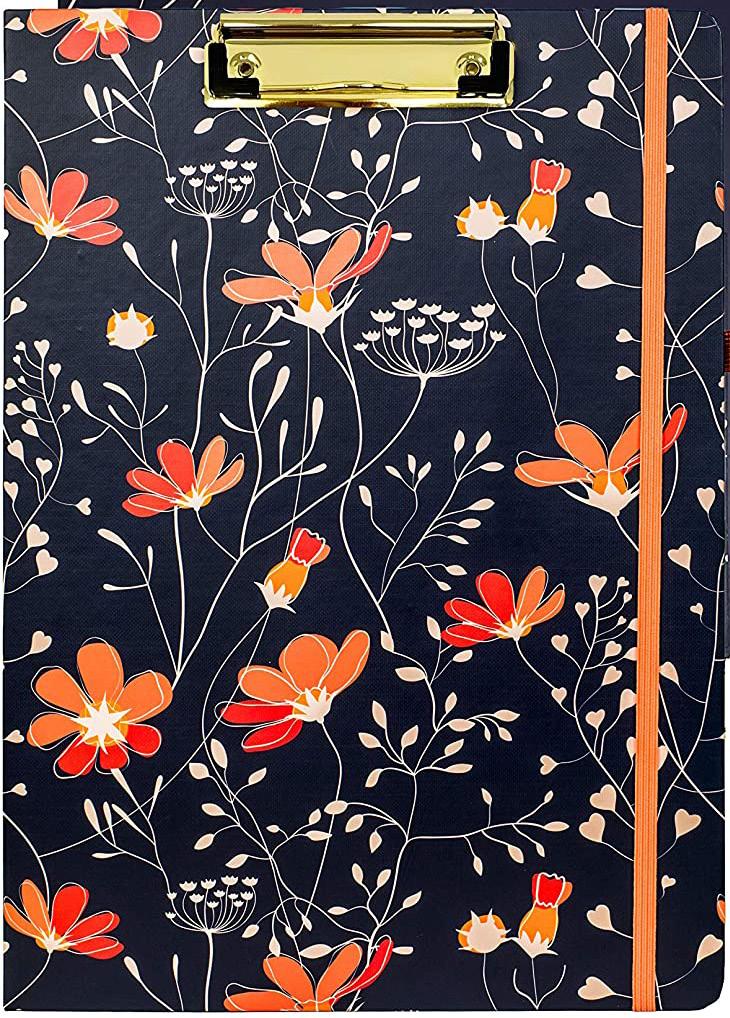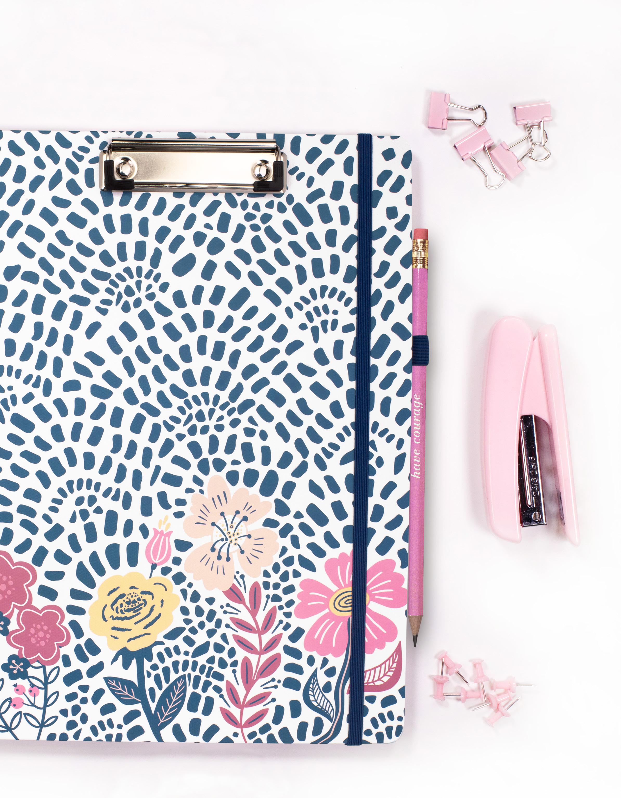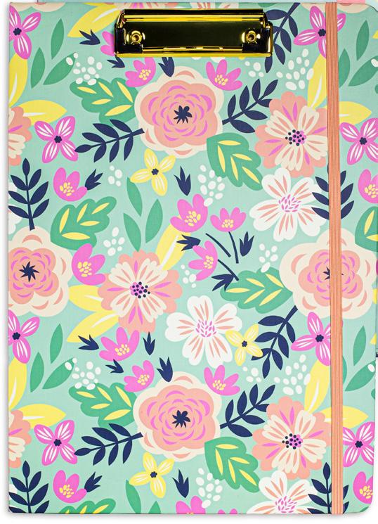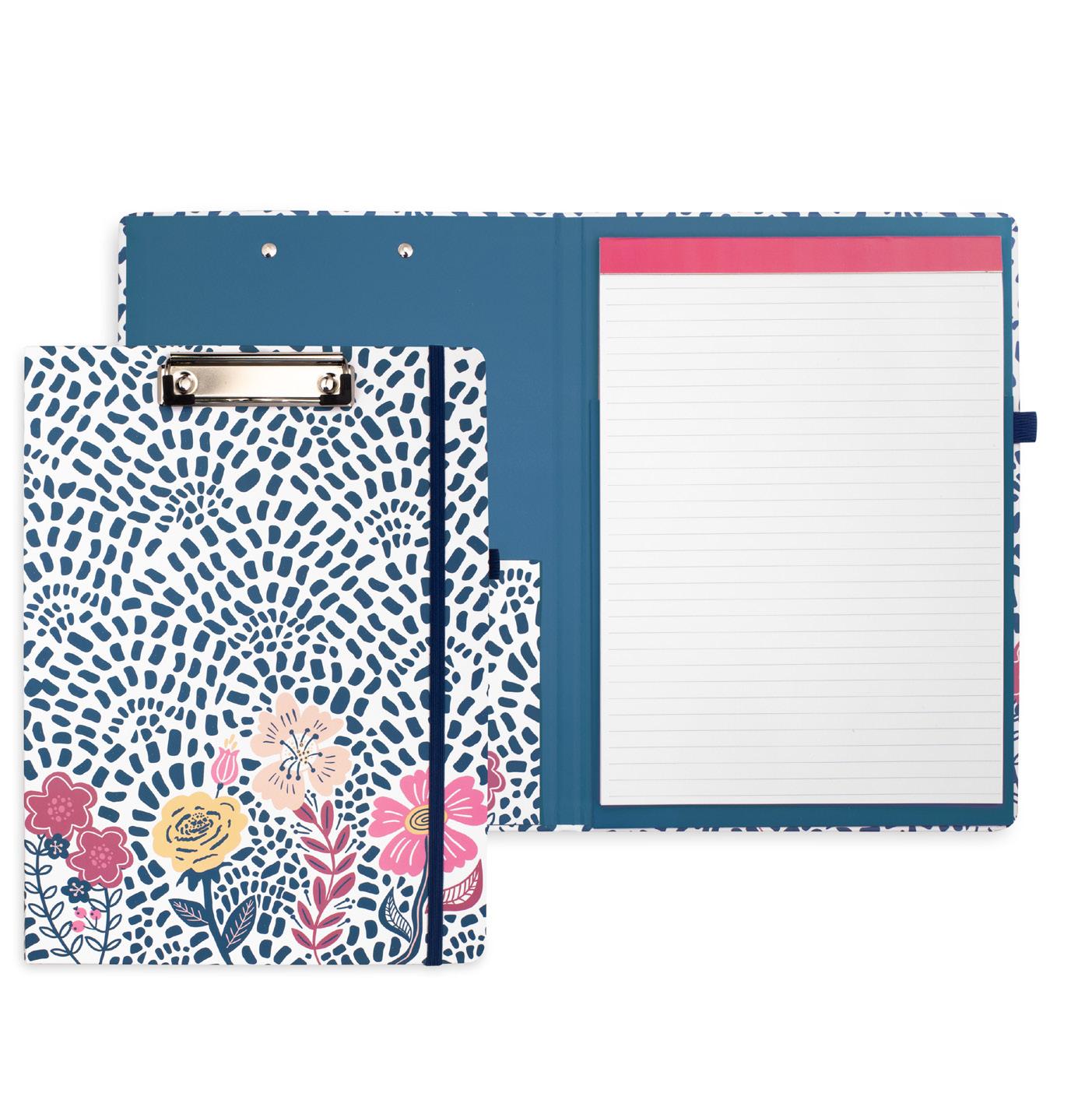 mosaic floral clip folio includes 40 page lined notepad interior pocket pen loop