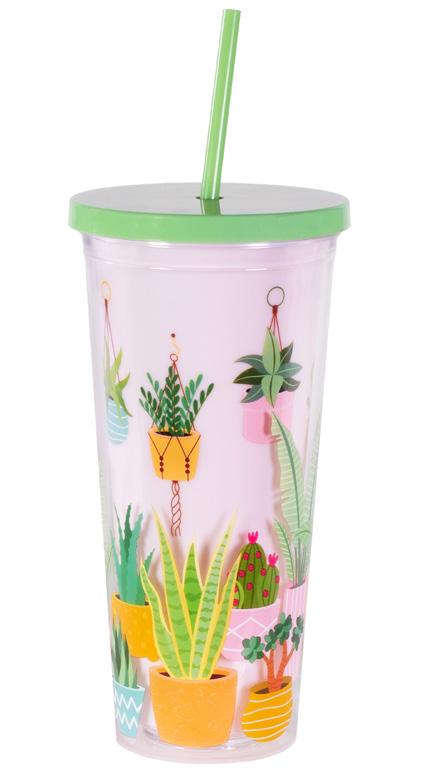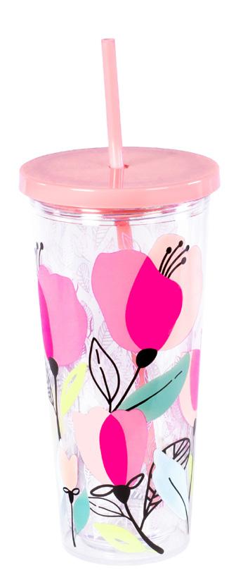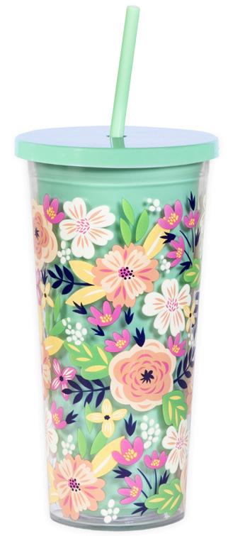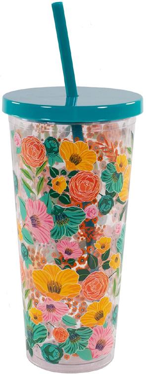 mosaic floral tumbler with straw double walled acrylic 24 oz. 1330