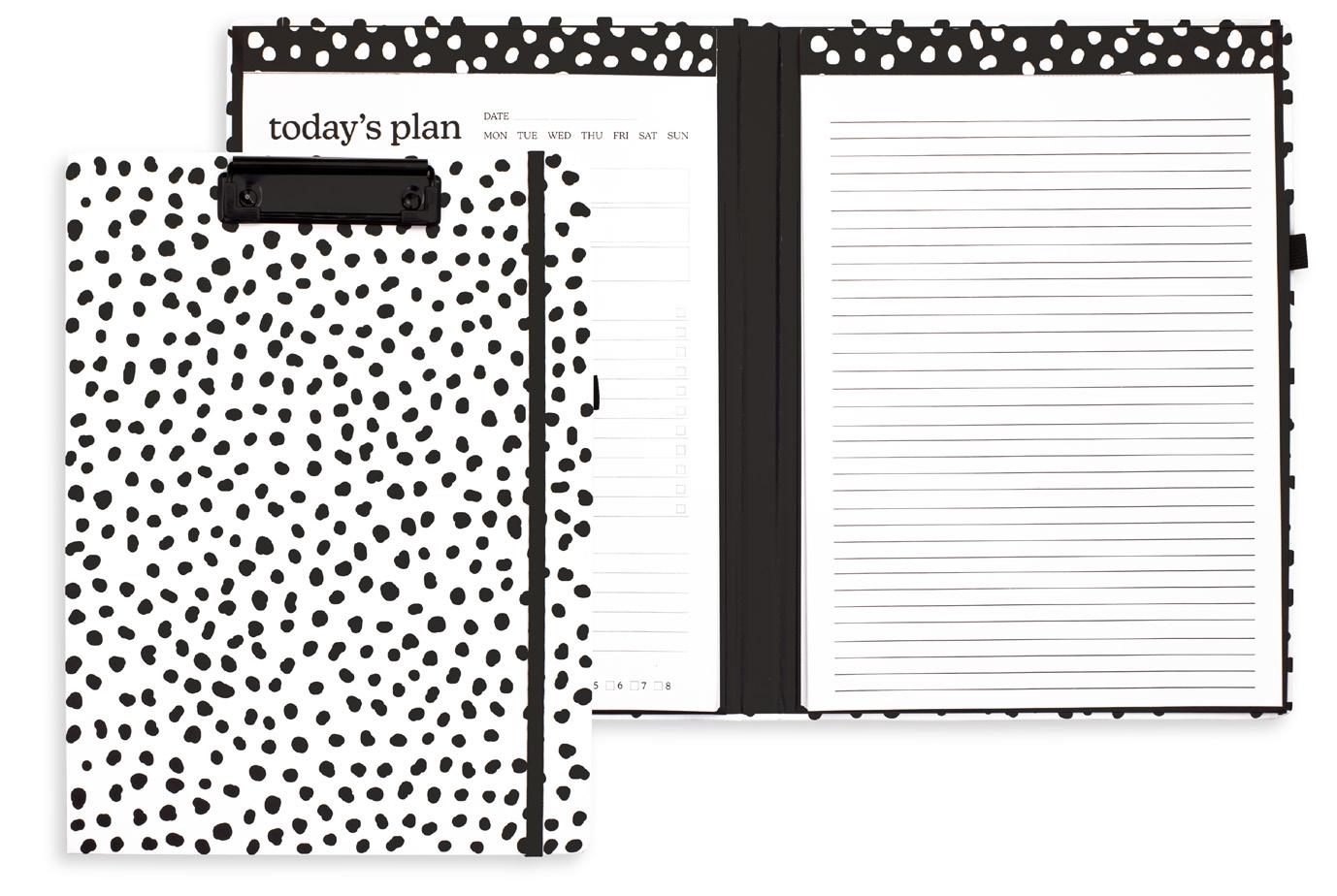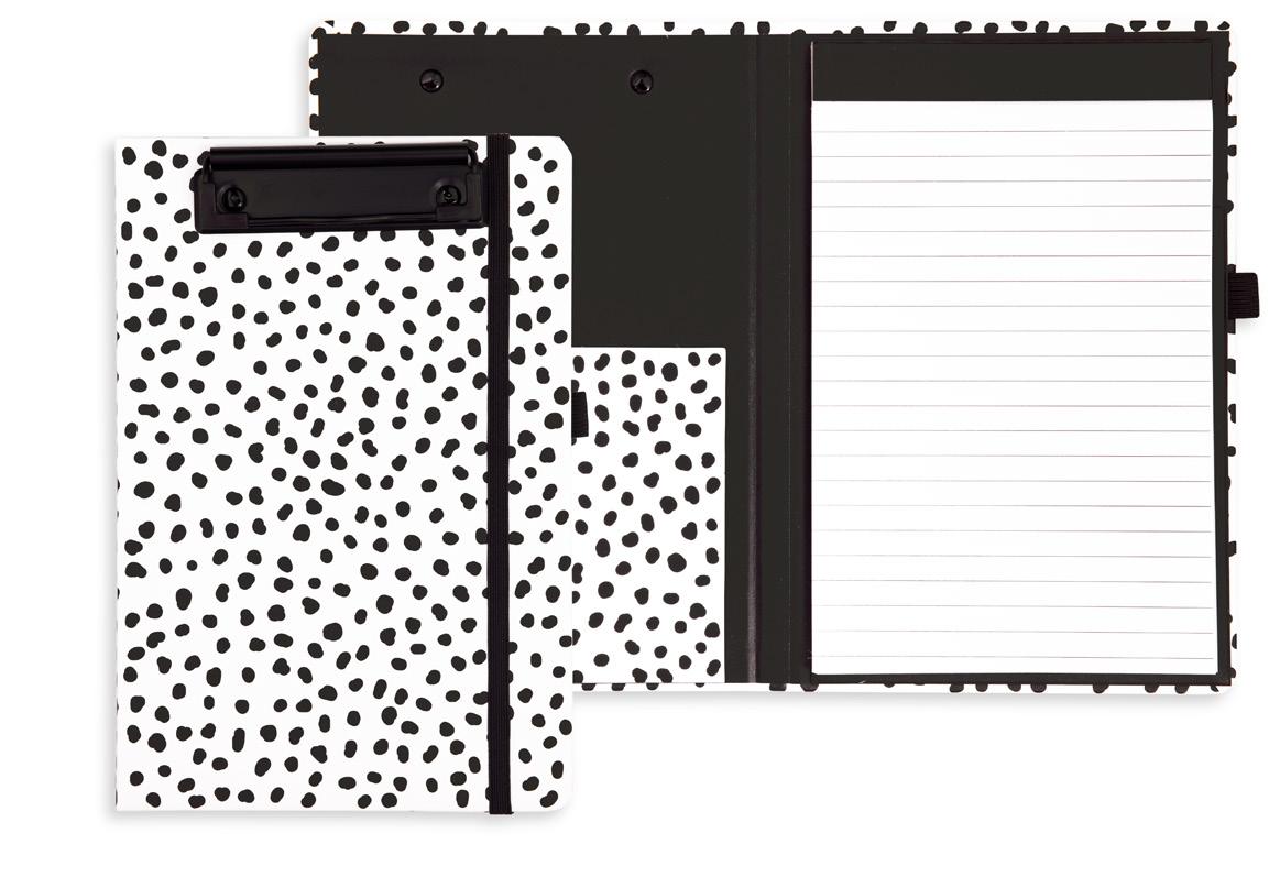 scatter dots double pad clip folio includes 2 40 page lined notepads pen loop 12 3/4”h x 9 1/4”w 1317
