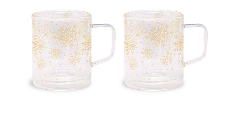 snowflake glass mug set set of 2 hand wash only do not microwave 1344