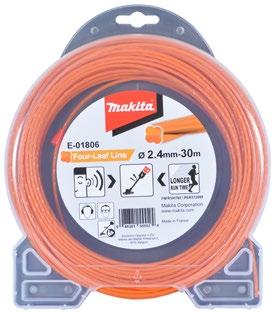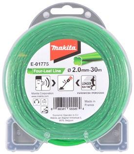 Kløverformet tråd sikrer mindre støj og mindre energiforbrug, og er derfor også meget velegnet til akku-trimmere. Der kan køres op til 20% længere på en opladning / tank, i forhold til alm. rund tråd. DSN: 9411825-1,65