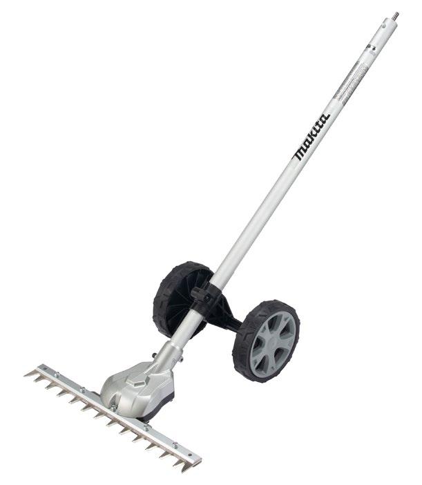 Praktisk og let værktøj til korrekt trimning og klipning af plænekanter. Kan ombygges til hækkeklipper. Knive til klipning af græs og hæk medfølger. Leveres inkl. hækkeklipperskær men uden batteri og lader.