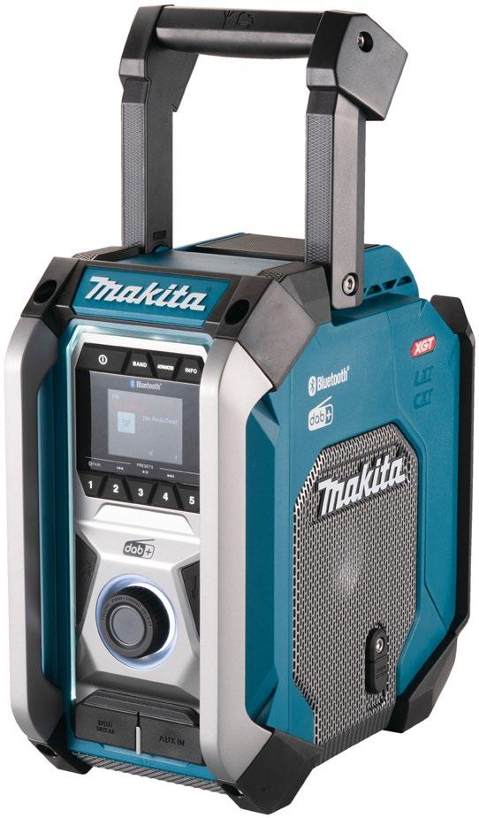 Bluetooth og DAB+ arbejdsradio med Subwoofer højtaler i bunden. IP64-klasse. Mulighed for tilslutning af MP3/iPod/iPhone. Bluetoothfunktionen giver mulighed for tilslutning til din musikafspiller. USB-tilslutning. Bruger Makita batterier fra 10,8V-40V eller net adapter (medleveret).
