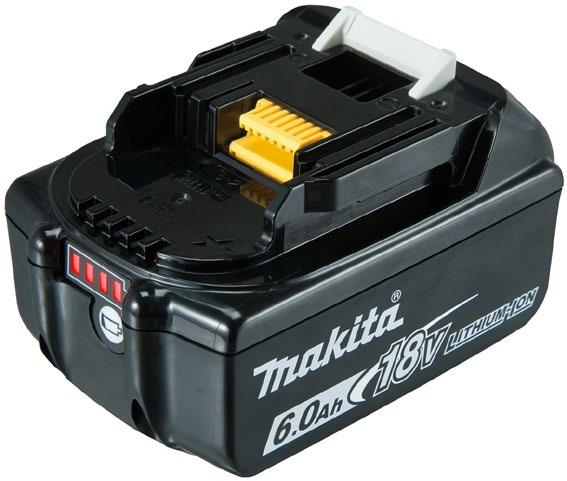 6,0Ah batteri med indikator for opladningsniveau. Kraftigt batteri til Makita 18V LXT-værktøj. Ideelt til maskiner med højt energiforbrug. Opladningstid: ca. 55 min. med en hurtig oplader.