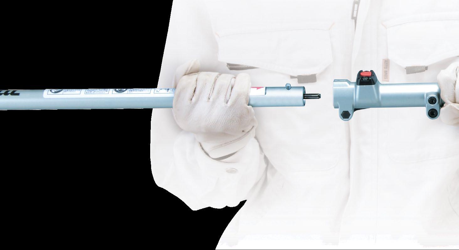 Stærk kulfri 18V stanghækkeklipper med justerbart klippehoved. Velegnet til klipning på svært tilgængelige steder. Klippekapacitet op til Ø 23,5 mm. Leveres uden batteri og lader.