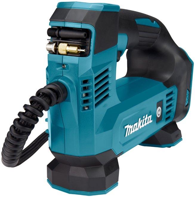 Pumpen stopper automatisk med at fylde med luft, når det forvalgte lufttrykniveau er nået. LED-lampen letter arbejdet ved dårlige lysforhold, og termostaten beskytter maskinen mod overophedning. Der medfølger flere typer ventiler. Leveres uden batteri og lader. DSN: 9411643