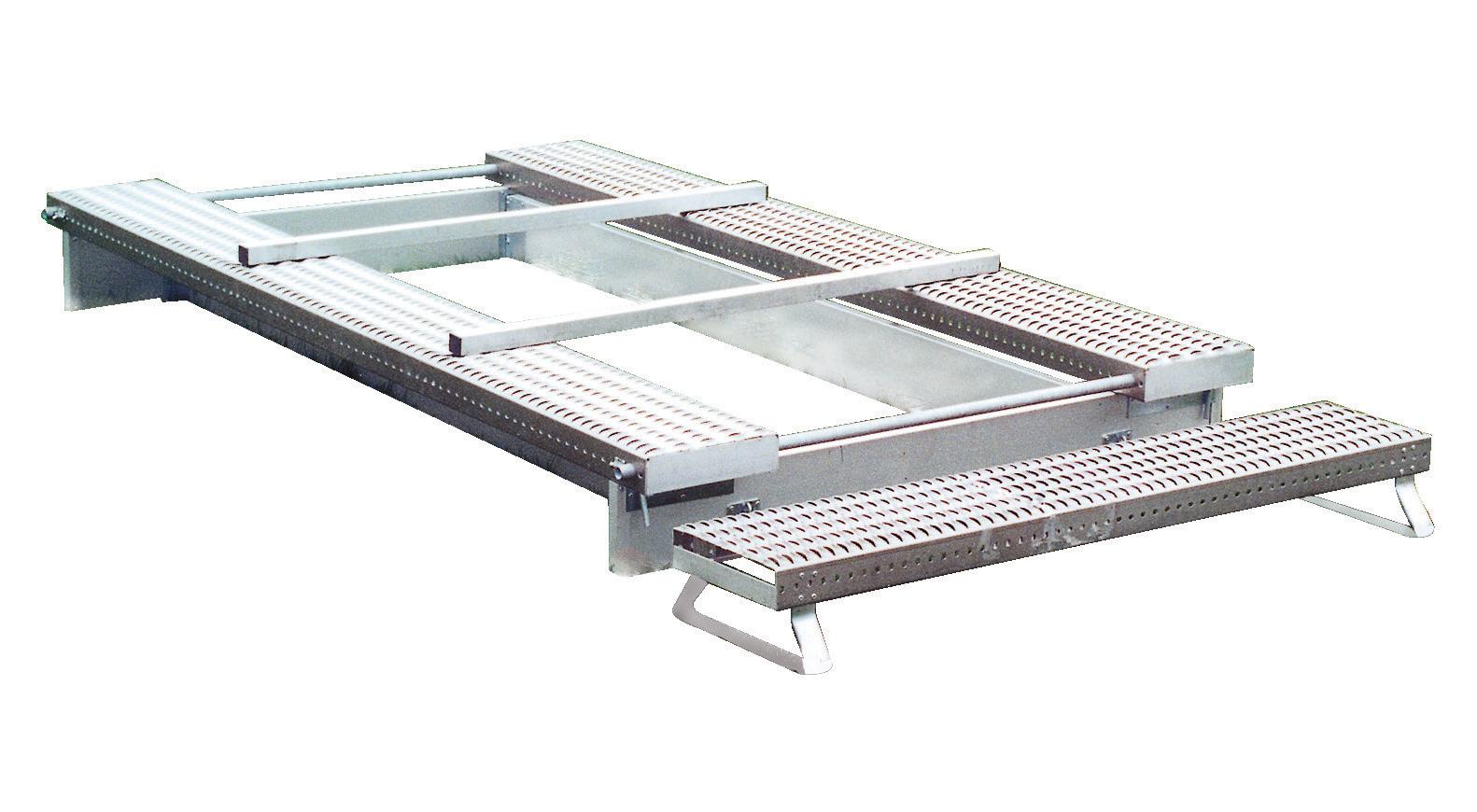 Et standardsæt består af: 1 stk. underramme der giver en forhøjning på 20 cm, 2 sidestykker og 2 gavlstykker med spærretapper. Varenr. 7120356 1 sæt skridsikre gangrister på 30 x 249 cm med enderør. Varenr. 7120325