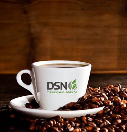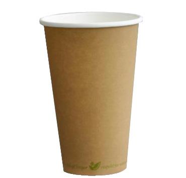 30 el. 40 cl. kaffebæger i pap med PLA-belægning. Bægeret er brunt med grøn bundtekst: ”bionedbrydeligt bæger”, ”respekt for naturen” og ”fremstillet af 100% biologisk materiale”.