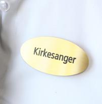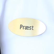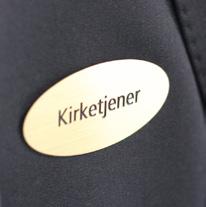 Dette elegante navneskilt er specielt designet til kirketjeneren, kirkesangeren eller graveren. Navneskiltet er den perfekte måde at præsentere dig selv på ved kirkelige handlinger.
