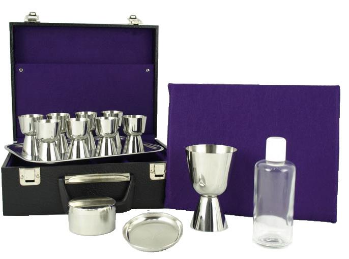 Hos DSN A/S har vi flere muligheder indenfor hjemmeberettelsessæt til ethvert behov. Et hjemmeberettelsessæt giver mulighed for at flytte nadver til andre lokationer. Det kan eksemplevis være på plejehjemmet, sygehuset eller andre steder. Nedenfor ses et klassisk hjemmeberettelsessæt i stål til otte pers. Sættet er pakket i en eksklusiv sort kuffert med håndtag, som gør det nemt at transportere det fra sted til sted. Hjemmeberettelsessættet er i stål og gør det utroligt holdbart og vedligeholdelsesfrit.