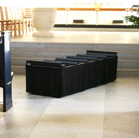 Et standardsæt består af to sidestykker i 230 cm længde samt to endestykker i 100 cm længde. Gravtæpperne fås til to dybder, hvoraf 160 cm er den mest anvendte. Med rundstokophæng, højde/dybde 160 cm. Leveres inkl. rundstokke.