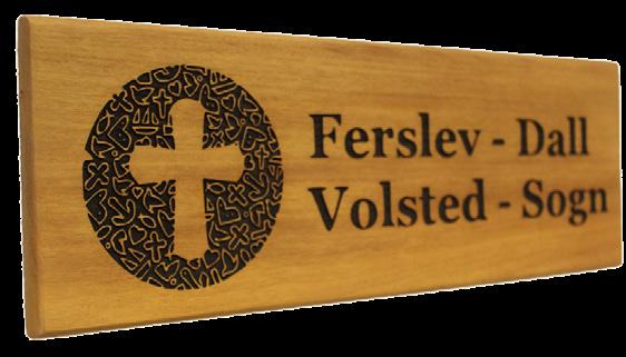 Det klassiske udtryk i mahogni passer perfekt til kirkelige bygninger, sognegårde eller kirkekontorer, hvor der ønskes et skilt med både kvalitet og æstetik. Et smukt og miljøvenligt valg til jer, der værdsætter håndværk, tradition og en naturlig finish.