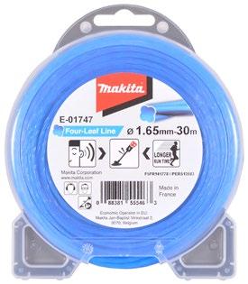 Kløverformet tråd sikrer mindre støj og mindre energiforbrug, og er derfor også meget velegnet til akku-trimmere. Der kan køres op til 20% længere på en opladning / tank, i forhold til alm. rund tråd. DSN: 9411825-1,65