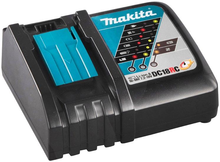 Hurtig oplader til 14,4V og 18V LXT slide-batterier. Forsynet med køleventilator, som afkøler batteriet og muliggør hurtigere opladning. Opladning er optimeret med hensyn til spænding, strøm og temperatur. Oplader et batteri på 15 til 55 minutter, afhængigt af batteriets kapacitet. DSN: 9411326