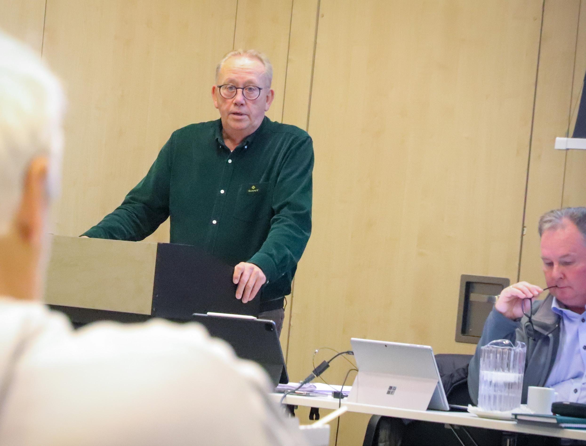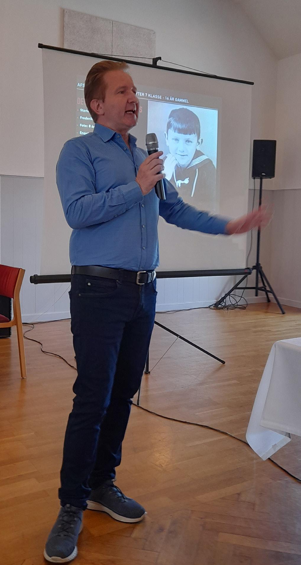 Stig Ulrichsen underholdt deltagerne med sit foredrag om Simon Spies, der er blevet meget aktuelt efter TV-dokumentaren og de mange skriverier om ”Formanden” Foto Stig Ulrichsen