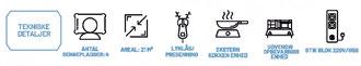 Kombikassetter med Ekstra bred indgangsdør Store hængeskabe mørklægnings/ Komfortable koldskumsmadrasser Stemningsbelysning insektplisségardin TV-skab med glasvitrine