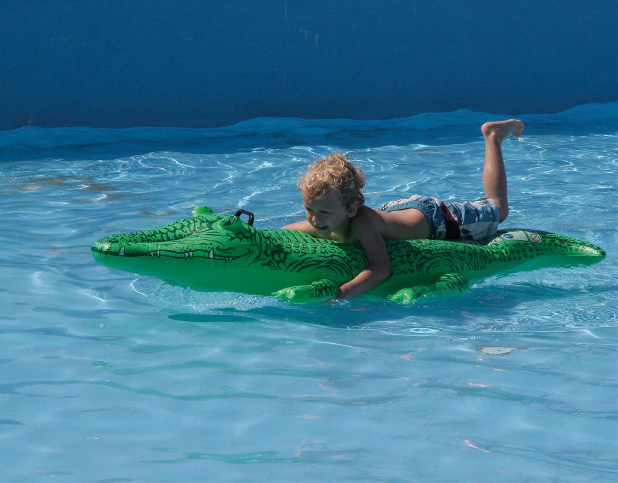 Når familien var ude at køre, kunne storken jo lige benytte børnenes badebassin. Camping Municipal,Ribeauville, Alsace. Jørgen Bertelsen, Ølgod.