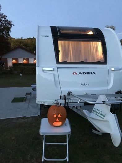 Campingåret 2022 afsluttede vi på Viborg Sø Camping. Uden fortelt, men med u-hyggelig halloween pynt og søde naboer. Grethe og Christian Byrdal, Tornby.