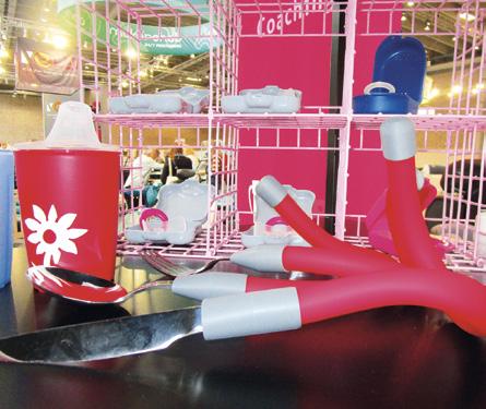 Firmaet Birdhouse havde små spiseredskaber og drikkedunke samt autokørestole med på messen.