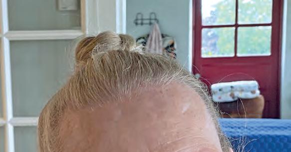 I dag supplerer jeg også med drænage af lymfekirtlerne, som hjælper med at rense kroppen for affaldsstoffer, styrker blodomløbet og booste immunforsvaret. Det har også haft en positiv effekt på mit velbefindende. Mit udslet er næsten forsvundet efter fem måneder, og mit hår er begyndt at vokse ud med normal tykkelse – hjulpet af en dermaroller, som stimulerer hårsækkene i hovedbunden ved hjælp af små nåle, der skaber bittesmå huller i huden.