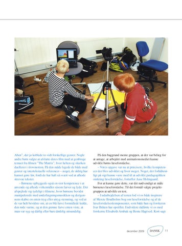 Aben”, der jo koblede to vidt forskellige genrer. Nogle andre børn valgte at afslutte deres film med at genbruge temaet fra filmen ”The Matrix”, hvor helten og skurken duellerer i slowmotion. På den måde legede de både med genrer og intertekstuelle referencer – noget, de aldrig har kunnet gøre før, fordi de har haft så svært ved at afkode skrevne tekster. – Børnene opbyggede også en stor kompetence i at anvende og afkode virkemidler såsom farver og lyde. Det afspejlede sig tydeligt i filmene, hvor børnene bevidst manipulerede med underlægningsmusikken og derigennem skabte en enten tryg eller utryg stemning, og ved at de var helt bevidste om, at en blå farve formidlede kulde, den røde varme, og at den grønne farve enten viste, at man var syg og dårlig eller bare dødelig misundelig.