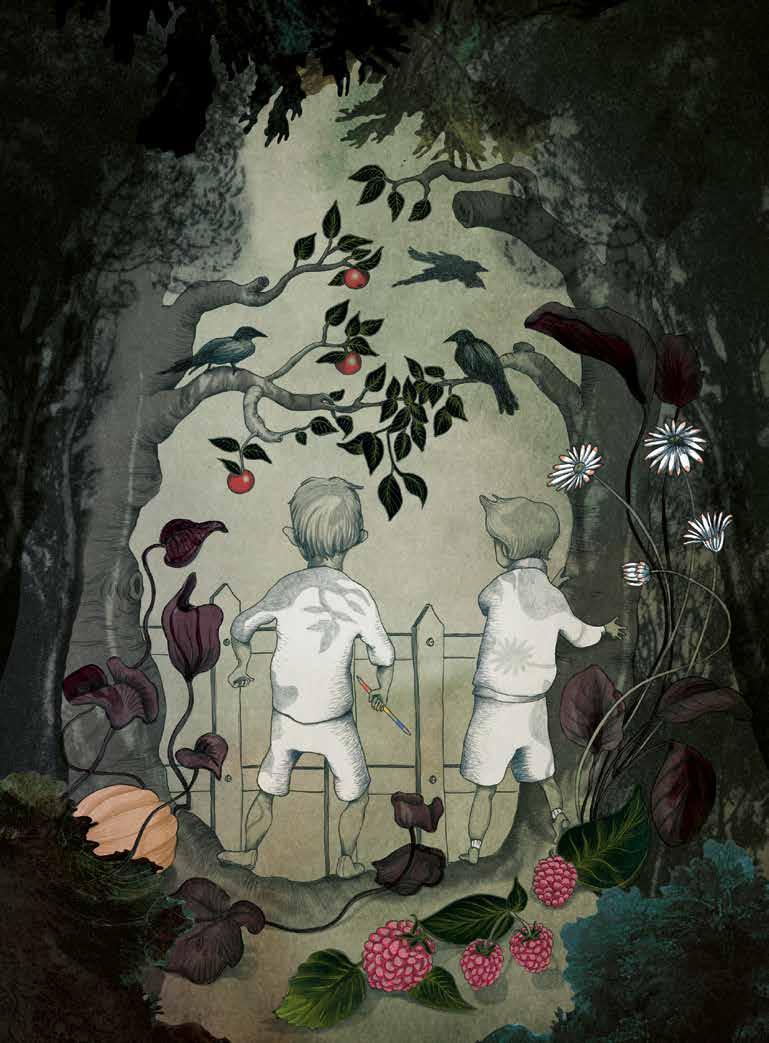 Der er både mod, ængstelse og nysgerrighed i drengenes kropssprog. Hendes illustrationer trækker læseren med ind i fortællingen og kræver dennes udelte opmærksomhed.