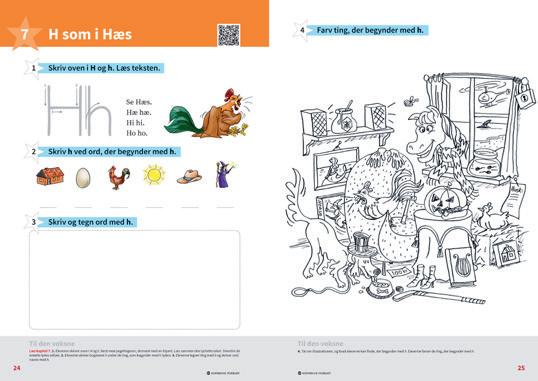 Understøtter arbejdet med de seks kapitler i læsebogen og har den samme tredeling som læsebogen. Eleverne arbejder med bogstavernes former, navne og lyde i de seks lydfamilier. Det primære fokus er bogstavernes standardlyde, men også de betingede lyde får opmærksomhed. Der arbejdes med tegning af egen sprogforståelse og konkrete strategier til at læse og skrive.